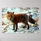 Sorprendente arte de un zorro rojo parado en la nieve. Variedad de mercadería de regalo con esta hermosa huella.