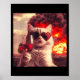 Póster Wacky Cat Holding Wine Selfi With Fire Funny Sungl