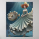 La IA generó arte de una mujer llamada Wanda y un pez globo en una aventura submarina de fantasía