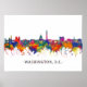 Elegant Watercolor Skyline of Washington, DC, the U.S. capital, a compact city on the Potomac River, bordering the states of Maryland and Virginia