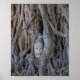 Cabeza de Buda en raíces de árboles de Ayutthaya, Tailandia. Es una vista extraña. Mantenida tan perfectamente entre las raíces de un árbol masivo, una cabeza de Buda se sienta para que los visitantes vengan y admiren. Ubicada a aproximadamente una hora de Bangkok, Tailandia, Ayutthaya fue en algún momento la capital del Reino de Siam.