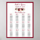 Póster Watercolor Burgundy Red Rose Wedding Seating Chart