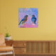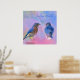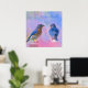 Nuestra nueva línea de fotografías combinadas con pintura acuarela. El fondo tiene un efecto de papel acuarela texturizado, pero este arte se imprimirá en papel liso. Un pájaro azul oriental macho frente al frente y desde atrás sobre un hermoso fondo lila adornado con trazos acuáticos. ¡Hermoso!