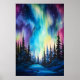 Elegante acuarela Celestial aurora boreal con magníficos colores azul, violeta y verde y paisaje invernal