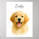 Póster Watercolor Pet Dog Portrait Script Name