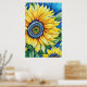 Watercolor Sunflowers On A Sky Blue Background Poster