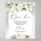 Watercolor white roses greenery foliage boho open bar sign poster, Blush Roses ©