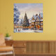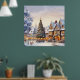 Elegante acuarela invierno Snowy Scenery Navidades diseño de aldea