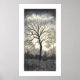 A tall barren oak tree. Black and white charcoal drawing orginally done on pale yellow pastel paper so a hint of sephia comes through the background trees. An actual scene from my front yard. Will coordinate with my ENDURING COUPLE poster for more impact in your room.