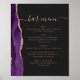 Póster Wedding Bar Menu Purple Rose Gold Agate Dark