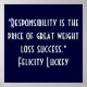 "Responsibility is the price of great weight loss success." ~ Felicity Luckey