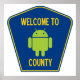 Are you a software developer / engineer working on the Android platform? Showcase your wry Android sense of humor with the Android robot / bug droid (bugdroid) along with the transportation sign that says it all: "Welcome To Android County". Make others do a double-take about what county they are in with a dose of software engineer turf-war humor! Note: Portions of this page are modifications based on work (http://www.android.com/branding.html) created and shared by Google and used according to terms described in the Creative Commons 3.0 Attribution License (http://creativecommons.org/licenses/by/3.0/).