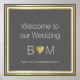 Romantic and personalized wedding-poster. Add bride and groom initials to the template to create a nice design with faux gold border and a love heart, with the text 'Welcome to the wedding of (couple initials). Thank you for celebrating with us'... in a thin and elegant font-style on gray background. Nice idea to make your wedding reception elegant