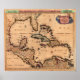 Copper-engraving, hand colored in outline when published. Large impressive map of the West Indies with the gulf of Mexico and Florida. The map shows prominently in the centre Cuba, Haiti, the Bahamas and Florida, which is here marked in the map as the province 'Tegesta'. With many engraved place names, rivers and mountains. Also islands, sand banks and reefs are shown on the map. Also Central America is nicely and detailed shown with Yucatan, Guatemala, Honduras, Nicaragua, Costa Rica, Panama and Terra Firmae. In the right upper corner is a beautiful colored title cartouche held by two putties. At the top a Dutch engraved title is present with a mileage scale and table of explanations.