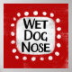 "Nariz de perro húmedo" es un divertido diseño de texto con una forma de acento blanco rodeado de puntos de textura caprichosos.