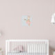 Sweet design for little girls' rooms features watercolor giraffe in pink ballerina outfit with matching headband on pastel geometric patterned background.  Customize with personal name