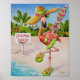 Póster Whimsical Beach Babe Flamingo 2 Acuarela 8x10