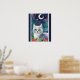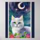 Posters artísticos presentan una pintura acuarela digital generada por IA de un adorable gato blanco y gris con fondo de cielo cósmico