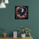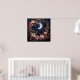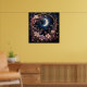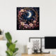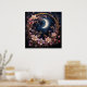 "Whimsical Crescent Bloom" es un hermoso diseño poster que capta la magia de una noche estrellada. Una luna creciente radiante brilla contra un cielo azul profundo, lleno de estrellas, todo enmarcado por un borde dorado y agitado y una profusión de delicadas flores rosadas y violetas. Esta encantadora imagen es perfecta para añadir un toque de fantasía a cualquier habitación.