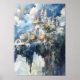 A breathtaking fantasy poster of an enchanting castle perched on a rocky cliff high above the clouds. Painted in dreamy watercolor tones, the artwork features elegant towers, whimsical domes, arched bridges, and golden trees lining a winding path. The castle appears to float, its reflection merging into surreal abstract rock formations below. The rich blue and cloud-filled sky forms a magical backdrop, while the soft orange foliage brings warmth and life. Ideal for fantasy lovers, storytellers, and dreamers, this poster brings a sense of wonder and timeless adventure to any space. Perfect as wall art for bedrooms, reading nooks, nurseries, or creative studios, it evokes the spirit of fairy tales and imaginative worlds.