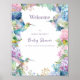 Póster Whimsical Hummingbirds with Hydrangeas Welcome