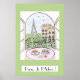 Where ever you are, keep Paris close by with this whimsical, hand painted drawing of a dreamy Paris morning, Eiffel tower in view through a lovely French window, complete with cappuccino and a croissant. Perfect for Francophiles who love France and anything French inspired. Paris is Always a Good Idea! Ideal home decor as a reminder of a wonderful trip to Paris.