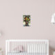 Las paredes están decoradas con un bonito ilustracion de una casa de árbol con paredes de cristal. Gráfica diseñada con software de asistencia de IA.