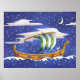 Póster Whimsical Ship Sailing in Space poster