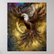 Whimsical steampunk charming eagle, this design features a Whimsical steampunk charming eagle, in glitter and gold, extremely detailed fractal watercolor, fractal gems, fractal crystals, gold glitter, digital painting, detailed watercolor art illustration.