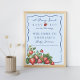 Póster Whimsical Strawberry Blue Baby Shower Welcome Sign