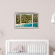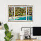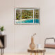 The artwork creates the illusion of having a bay window overlooking a Caribbean Beach. The illusion makes you feel as though you're looking out at a beautiful beach scenery.