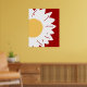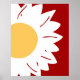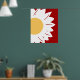 Póster White Daisy with Yellow Center on Red Abstract