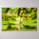 Illuminate your space with the soft, ethereal glow of the White Lotus Poster. This breathtaking photograph captures a pristine white-water lily resting gracefully upon a vibrant green lily pad, perfectly mirrored in the still, sun-dappled waters of a hidden garden pond.