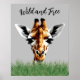 This poster features and adorable giraffe peeking out from behind grass with the words "Wild and Free". The text on the poster is customizable with your own or can be left as is.