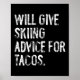 Póster Will Give Skiing Advice For Tacos Funny Ski Coach