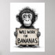 Póster Will Work for Bananas - Humorous Monkey Sketch