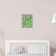 Poster en un patrón Art Nouveau de William Morris de limas, granadas y melocotones, con flores, en ramas frondosas -fruta en verde cal y naranja de coral, con hojas verdes, con un fondo estampado