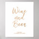Póster Wine & Beer 8x10 Elegante Rosa Boda de oro Rótulo