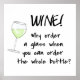 ¡Agrega humor a este poster de arte para los amantes del vino! Ideal también para un negocio de vinos. Un vaso de vino blanco se inclina hacia el diseño del texto de la palabra que dice "Vino, ¿por qué pedir un vaso cuando se puede pedir toda la botella?" Moderno, divertido y caprichoso, este poster creará una sonrisa y comentarios. Fácil de personalizar o de personalización para añadir tu nombre u otras palabras debajo del diseño de texto artístico. El arte y el diseño originales son obra del artista Phyllis Dobbs. Los colores son verde limón y negro. Póngase en contacto con Phyllis Dobbs si desea personalizarlo para su negocio o evento. Personalizable completo.