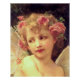 Beautiful celestial dreamlike painting of a lovely young girl with romantic pink roses in her golden hair and with ethereal angelic wings, embodying themes of innocence and purity. Oil on canvas by French artist Guillaume Seignac.