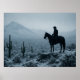 Discover the quiet beauty of a snowy desert! This unique winter scene features a lone rider in a rare Texas snowscape, a distinctive piece for seasonal decor and winter western themes.