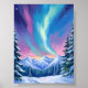 Winter Night Northern Lights Watercolor Mountain Poster Painting