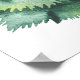 Nieve acuarela, arco verde, árbol evergreen y copos de nieve.
