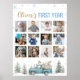 Celebrate your baby’s first year with our Winter Truck Woodland Photo Milestone Poster! Featuring a cute blue truck surrounded by adorable woodland animals—foxes, bears, and deer—amid snowy pine trees and frosty accents, this poster beautifully captures your little one’s first twelve months. Designed in soft watercolor blues with rustic winter details, it’s perfect for displaying monthly photos and personal milestones at your winter boy birthday or woodland onederland celebration. A heartwarming keepsake to cherish long after the party ends.