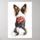 Este encantador ilustracion ofrece vistas de fondo a un perro de Papillon adornado con una bandana roja festiva con copos de nieve blancos. El lujoso pelo del perro, que combina tonos marrones, negros y blancos, crea un sorprendente contraste con el fondo blanco. El detalle caprichoso de la textura de piel y el toque lúdico del accesorio de vacaciones evocan un espíritu cálido y alegre de invierno. Perfecto para los amantes del perro y de las vacaciones.