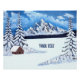 Un poster con una hermosa escena invernal, con montañas nevadas, cabaña rústica y verduras cubiertas de nieve. La imagen se puede personalizar. También tiene la opción de agregar texto. Obra de arte original de W.B.