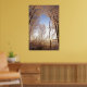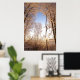 Un agujero en una madera cubierta de nieve muestra un cielo azul durante un frío invierno en Bélgica