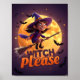 Bruja por favor - Graciosa Poster de Halloween Una juguetona bruja personalizado volando sobre su palo de escoba a través de una brillante luna llena, con estrellas y murciélagos en el fondo. La bruja es alegre, con un ambiente alegre y divertido, usando colores audaces de Halloween (púrpura, naranja, negro). Añada la frase "Bruja, por favor" en letras en negrita y divertida. Este divertido poster de Halloween es perfecto para agregar humor y magia a tu espacio. Con sus colores llamativos y su frase cursi, es ideal para fiestas, aulas o decoración estacional en casa. poster de brujas gracioso, bruja por favor, arte en la pared, Humanidades de Halloween, poster de brujas elegante, decoración de Halloween con broomstick, adorable arte con brujas, poster de la luna de brujas, arte en la pared de la fiesta de Halloween