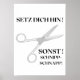 Dieses witzige Toiletten-Poster ist ein Must-have für jedes Badezimmer oder Gäste-WC. Das Poster mit dem Aufdruck "Setz dich hin! Sonst Schnipp Schnapp" su eine humorvolle Erinnerung un eine wichtige Regel im Badezimmer.