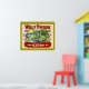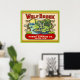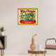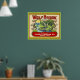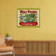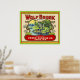 Gran poster con una imagen de un sello vintage de un cantante de Osseo, Wisconsin. Un lobo en la orilla de un río brotó con un marco de arte deco.
